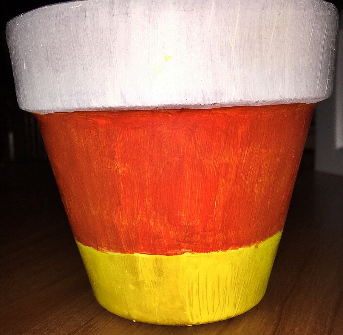 Now your cute candy-corn pot is all finished! Let the autumnal decorating begin!